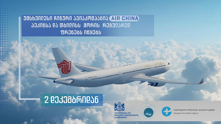 Die größte chinesische Fluggesellschaft Air China beginnt mit regelmäßigen Flugverbindungen zwischen den Hauptstädten Georgiens und Chinas. Laut dem Antrag, der beim staatlichen Amt für Zivilluftfahrt Georgiens (Georgisches Ministerium für Wirtschaft und nachhaltige Entwicklung) eingereicht wurde, werden die Flüge zwischen Peking und Tiflis ab dem 2. Dezember dieses Jahres über die Stadt Urumtschi durchgeführt.
